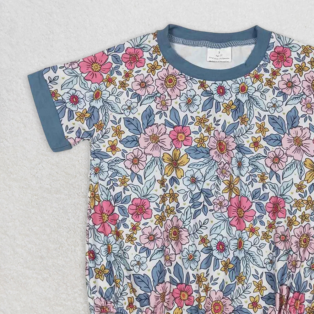 SR1500 RTS NO MOQ Baby Girls Summer Rompers Baby Girls Green Flowers Pink Summer Rompers