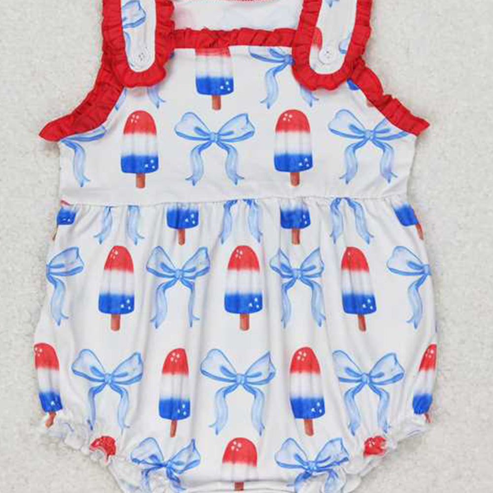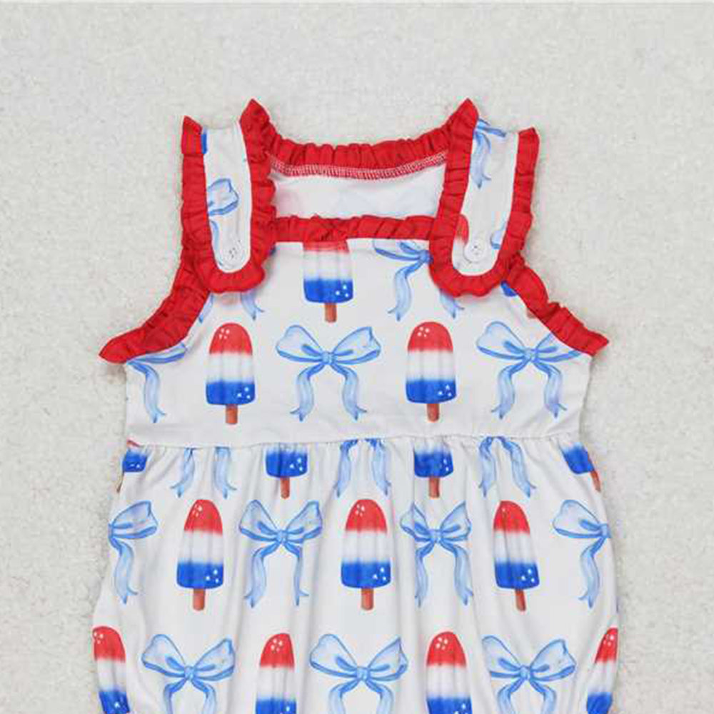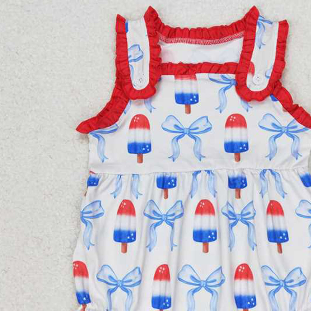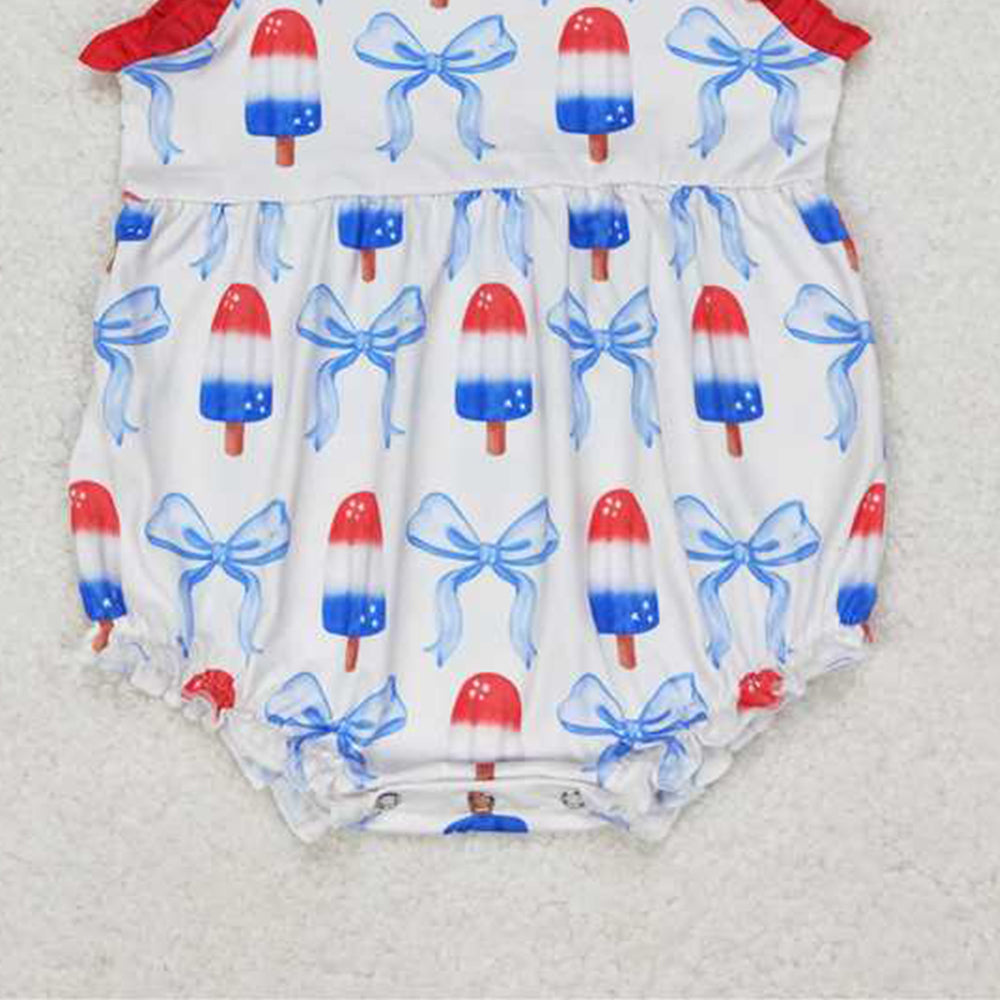 6.11 SR1551 RTS NO MOQ Baby Girls Summer Romper Baby GirlsJuly 4th Patriotic Popsicle Romper