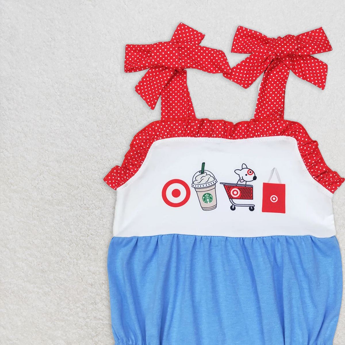 SR1605RTS NO MOQBaby Girls Summer Rompers Baby Girls Straps Coffee Cart Summer Rompers