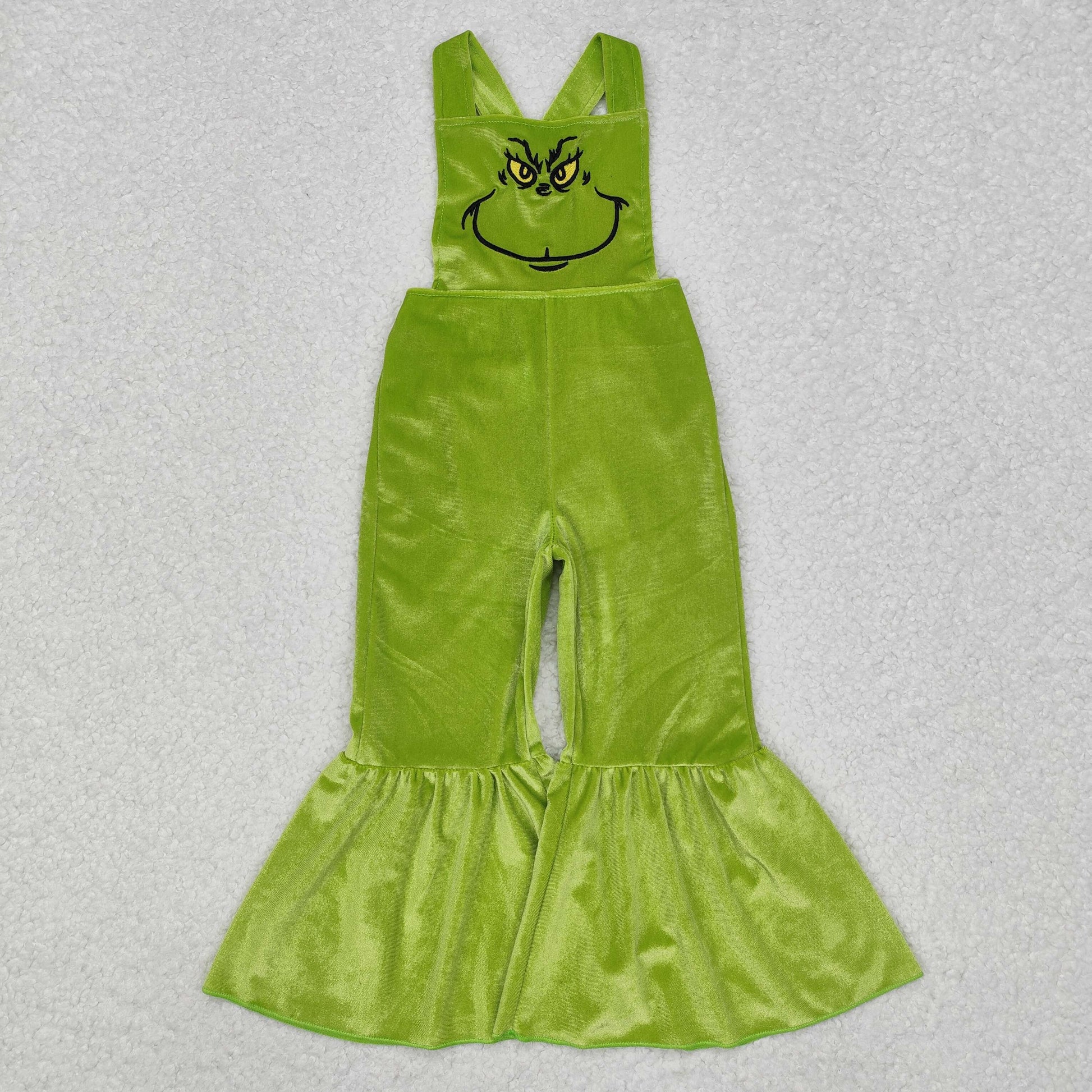 SR2013 Straps green face kids girls Christmas bell bottom overalls