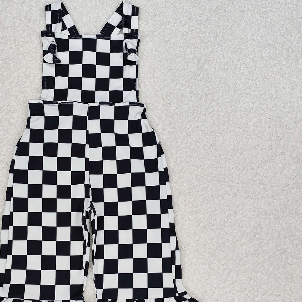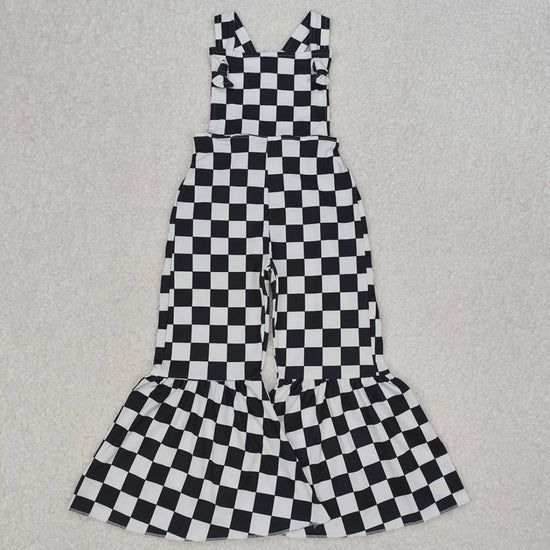 SR2111Kids Girls Black Straps Bell Bottoms Jumpsuit Strapless Romper for Children's Partywear And Special Occasions