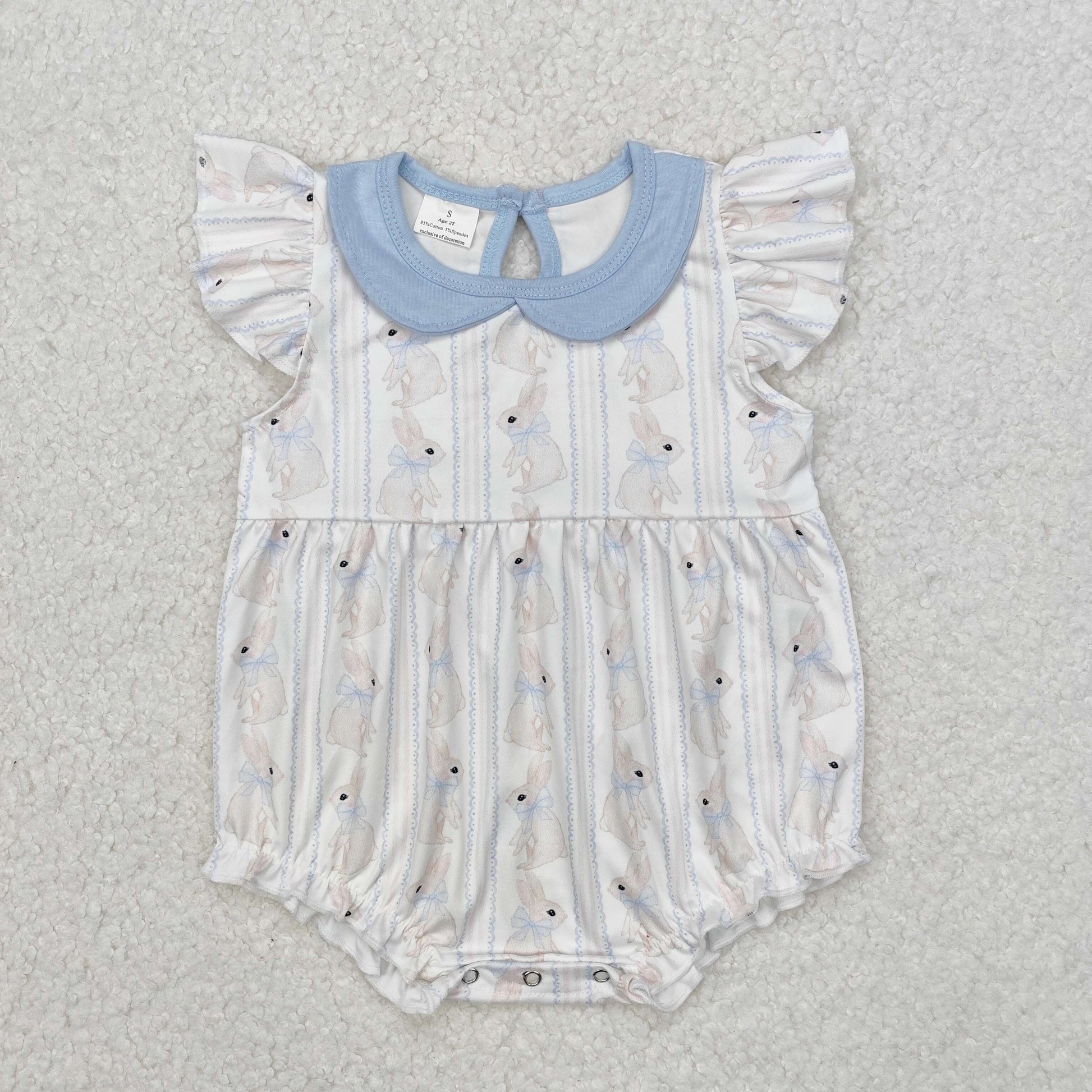 SR2132 Flutter sleeves light blue bow baby girls Easter romper