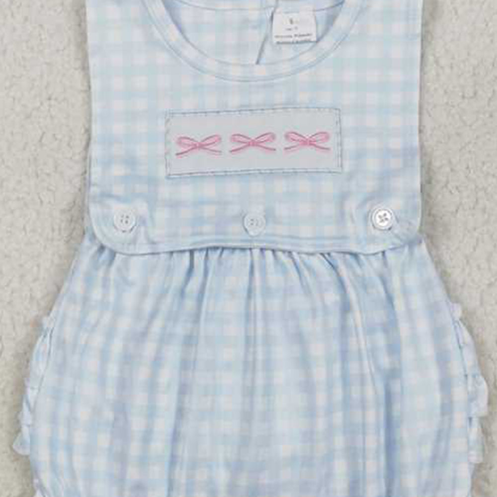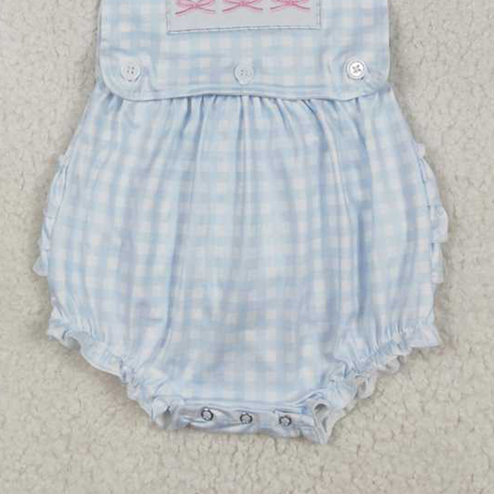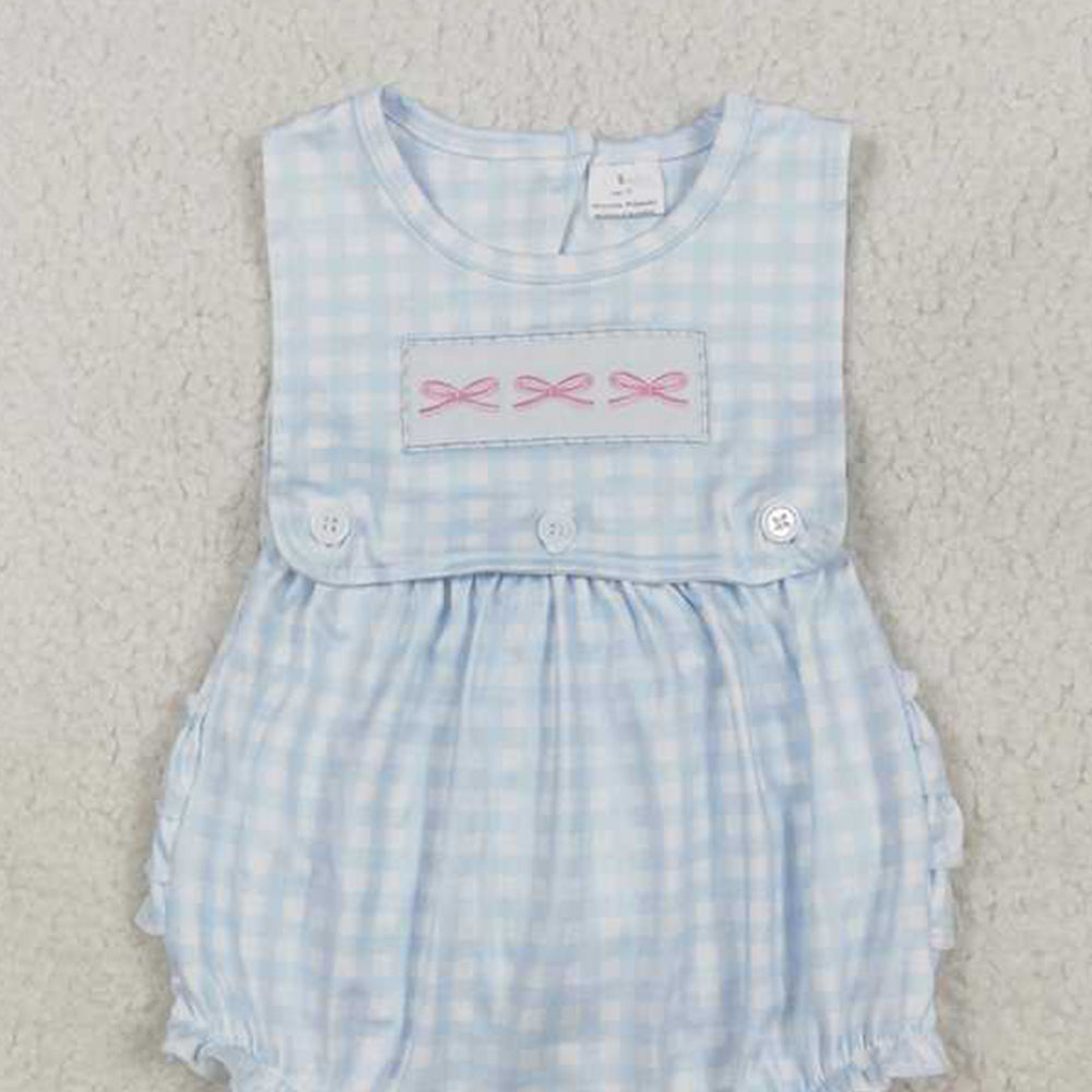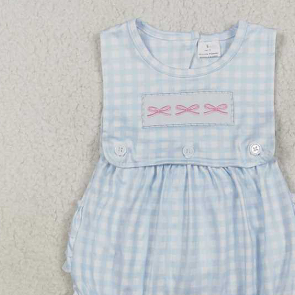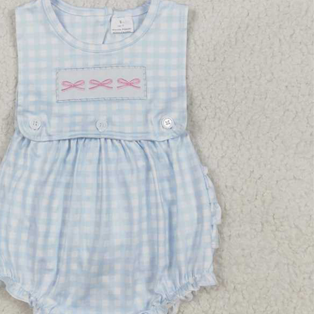 4.17 SR2203 RTS NO MOQ Sleeveless bow embroidery plaid ruffle baby girls romper