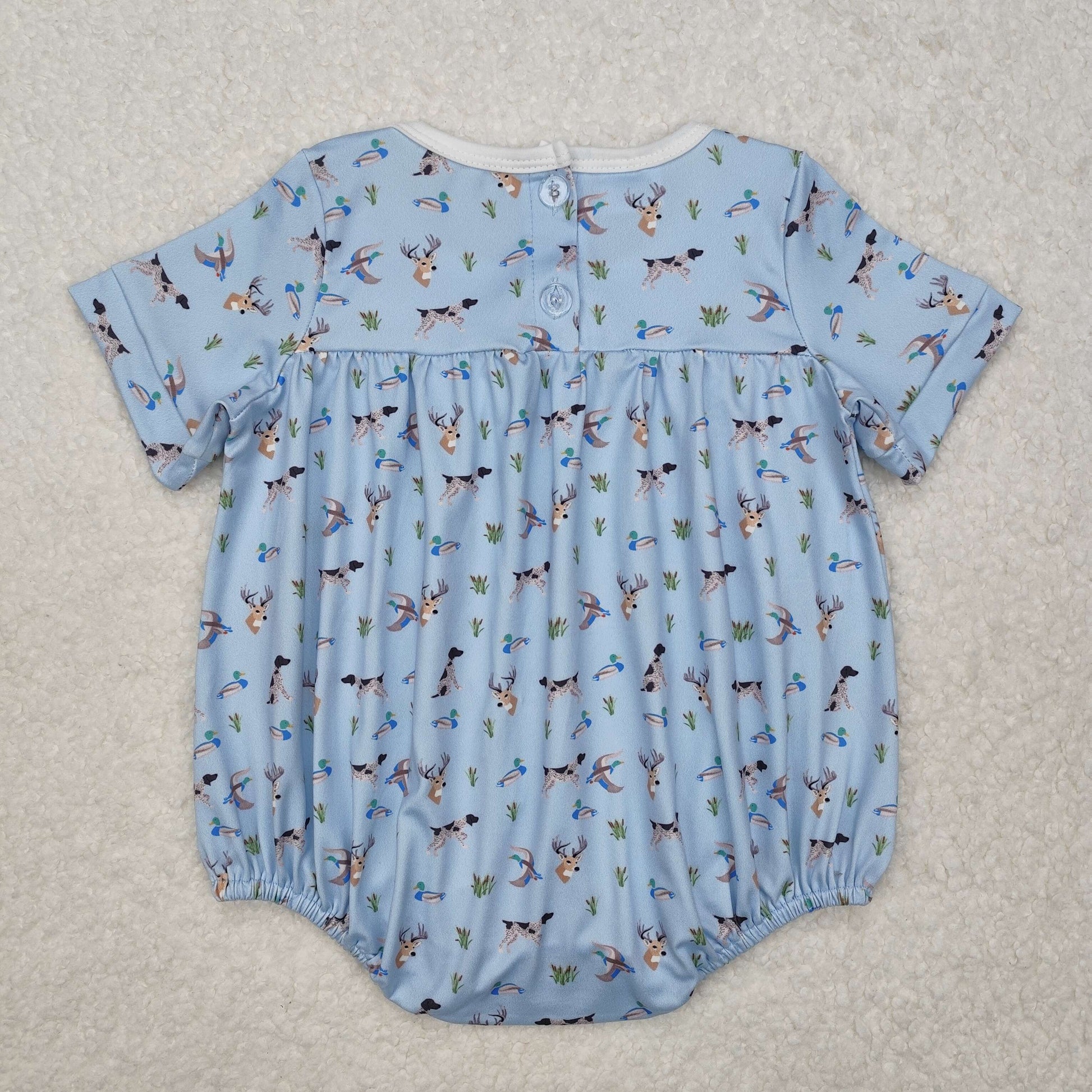 SR2275Short sleeves duck dog deer light blue baby boy romper