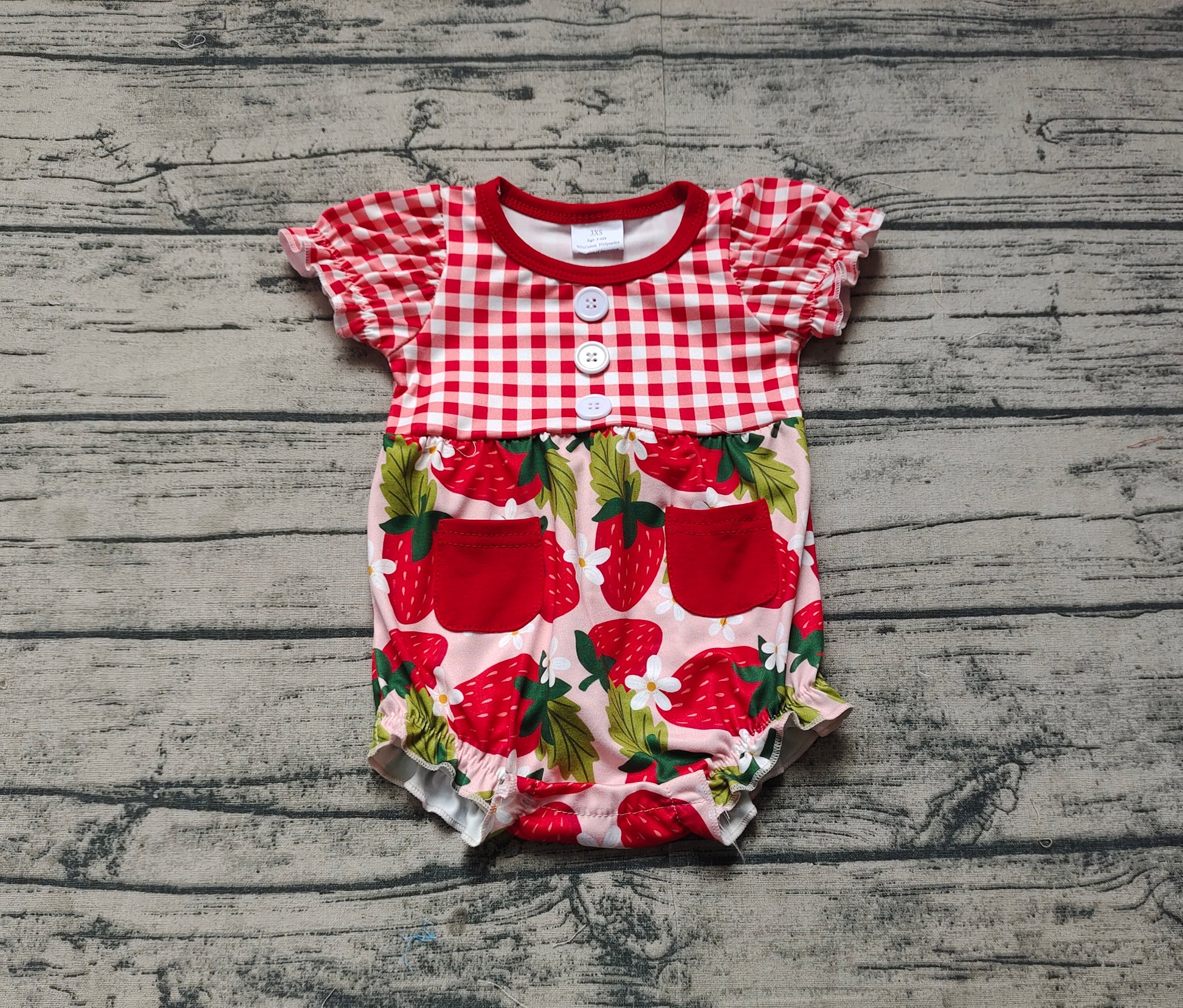 SR2307Red Plaid Short Sleeve Strawberry Baby Girls Romper Cute Children's Clothing 100% Cotton Comfortable Unisex Outfit for Infants