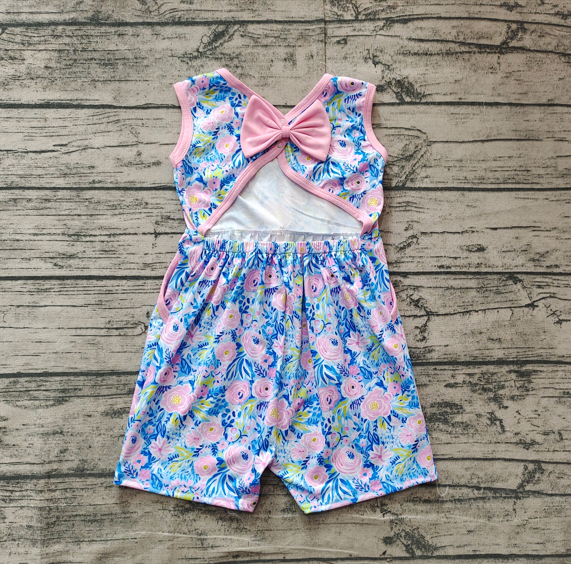 SR2521Sleeveless light blue floral baby girls summer jumpsuit