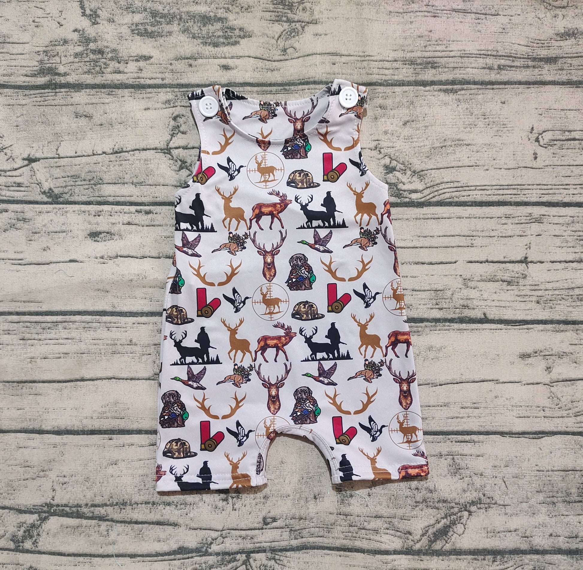 SR2539Baby Boy Sleeveless Romper Deer Duck Dog Hunting Theme Soft Cotton Summer Outfit for Infants