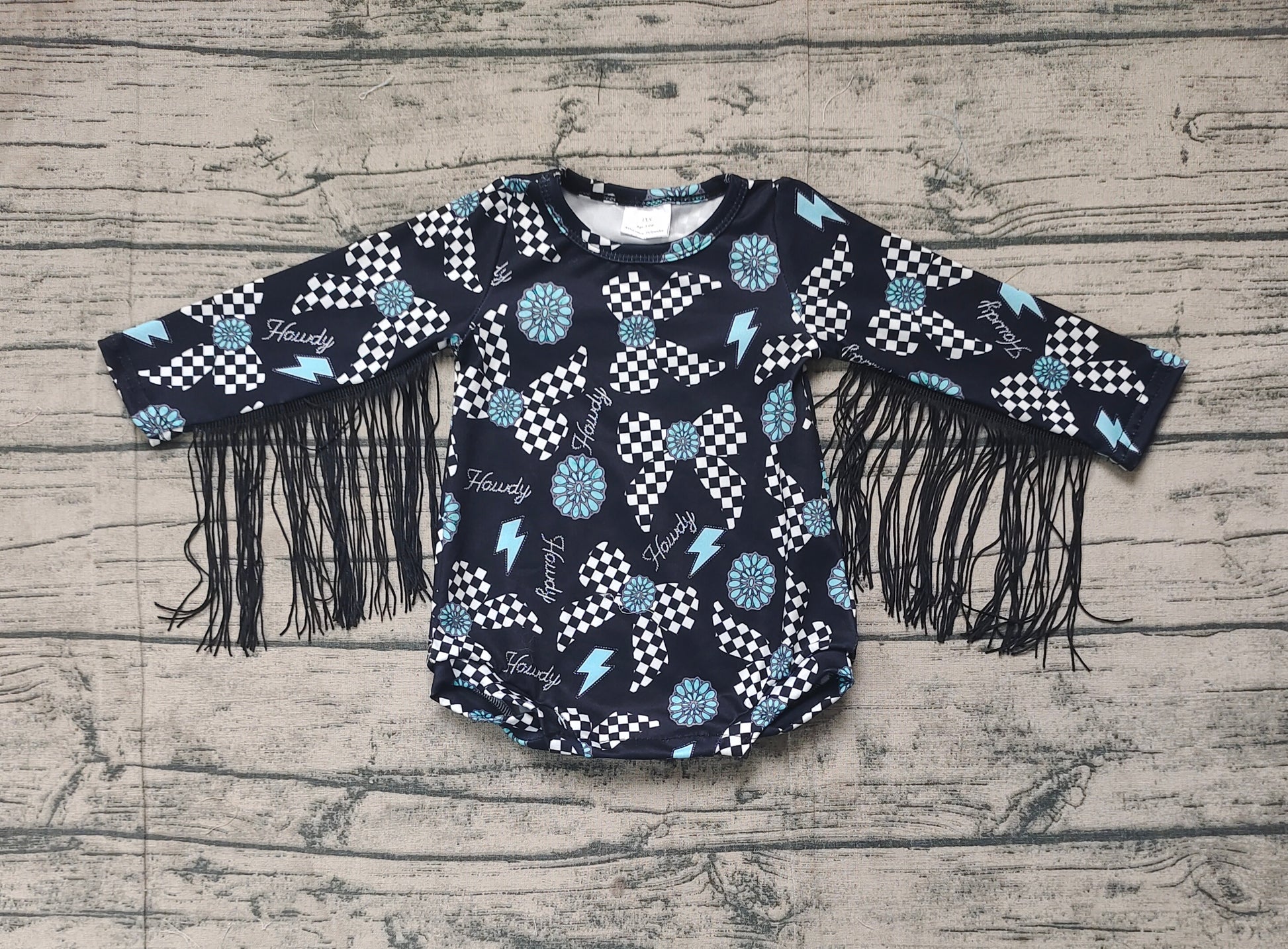 SR2552Sweet Turquoise Plaid Bow and Tassels Western Romper for Little Babies