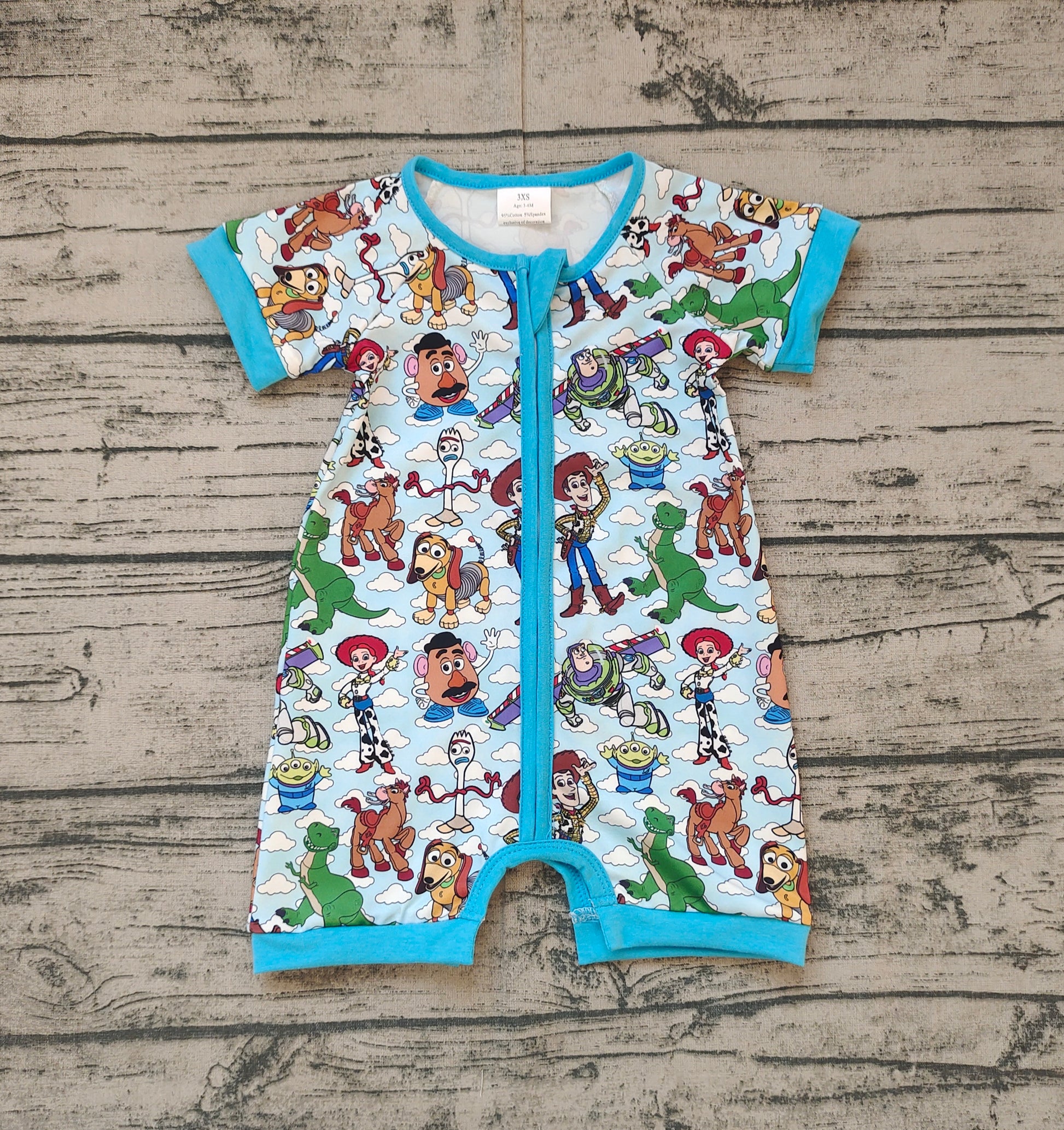 SR2580Blue short sleeves dog toy baby boy summer zipper romper
