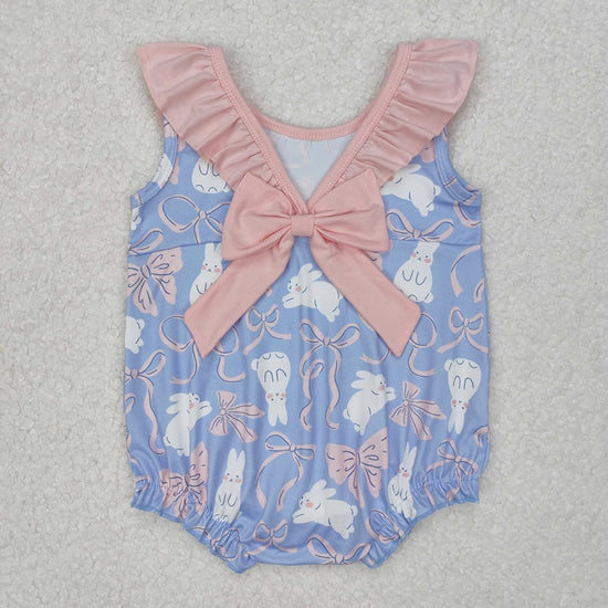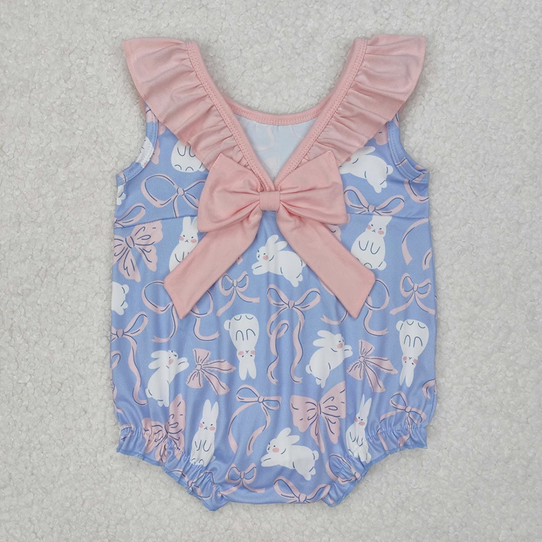 SR2583Baby Girls Sleeveless Ruffle Bunny Bow Romper Easter Outfit Spring Summer Casual Comfortable Clothes for Infants