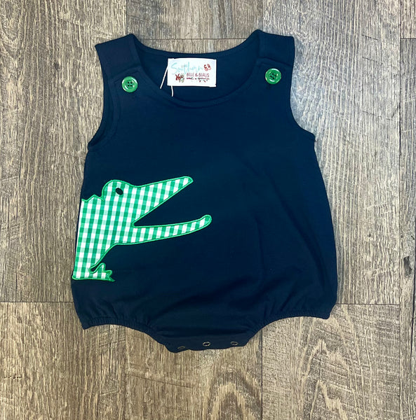 SR2683Baby Infant Girls Navy Crocodile Sleeveless Rompers