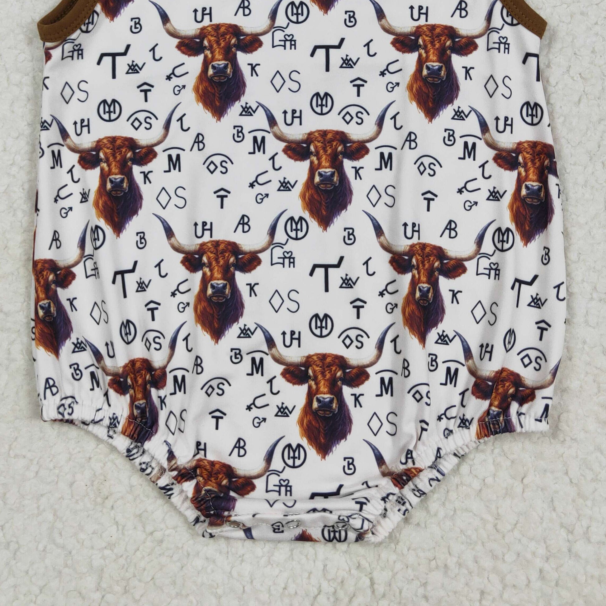 7.14 SR2699RTS NO MOQ Baby Boys Summer Rompers Baby Infant Boys Western Cow Branded Rompers