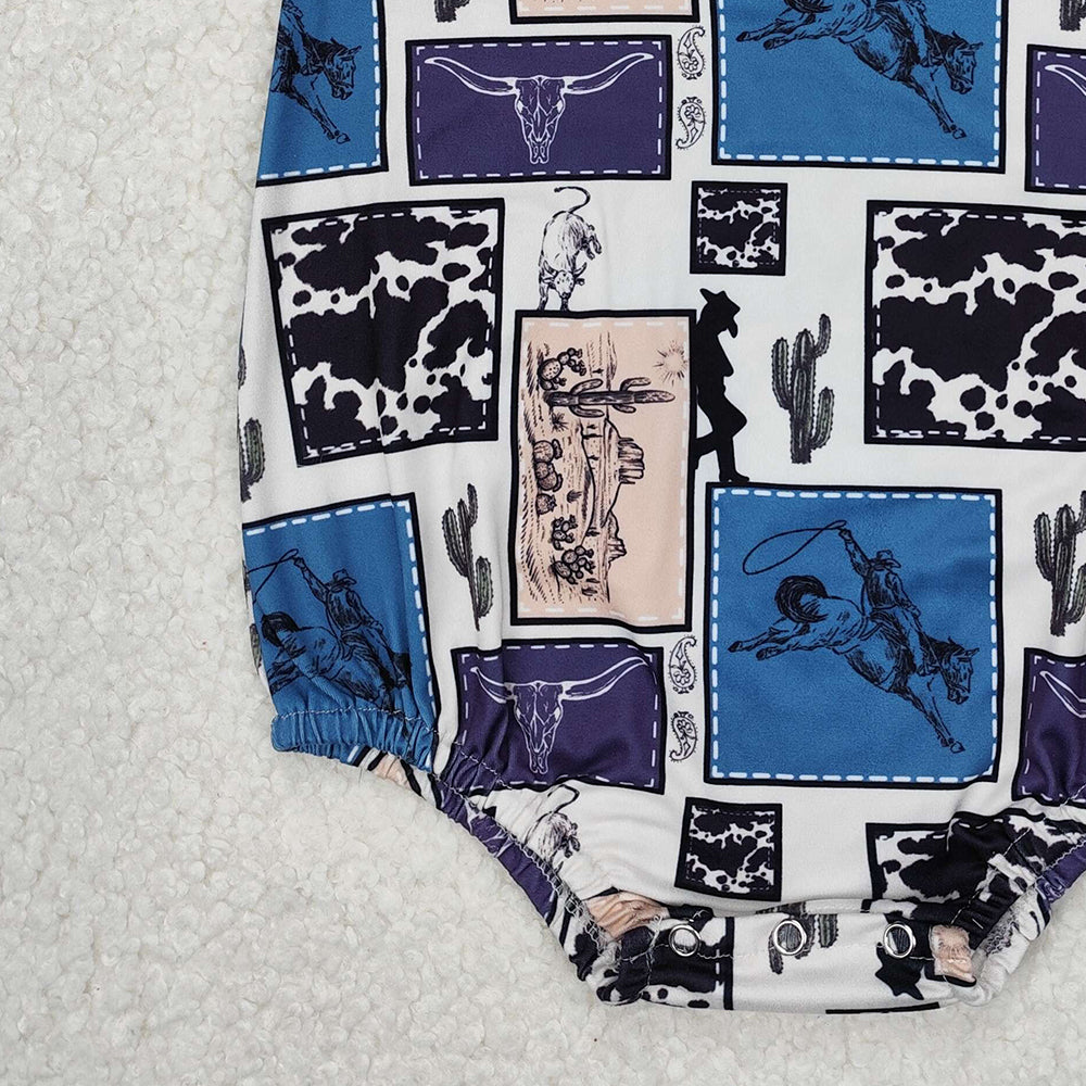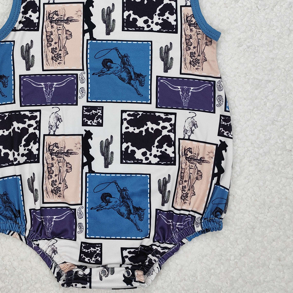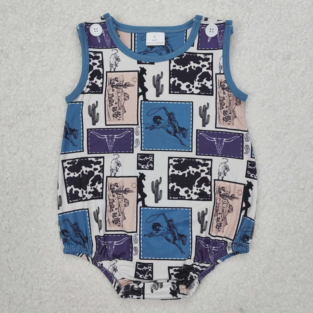 SR2700Cactus Rodeo Western Sleeveless Romper for Baby Boy Comfortable Breathable Summer Outfit with Cactus Print
