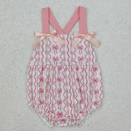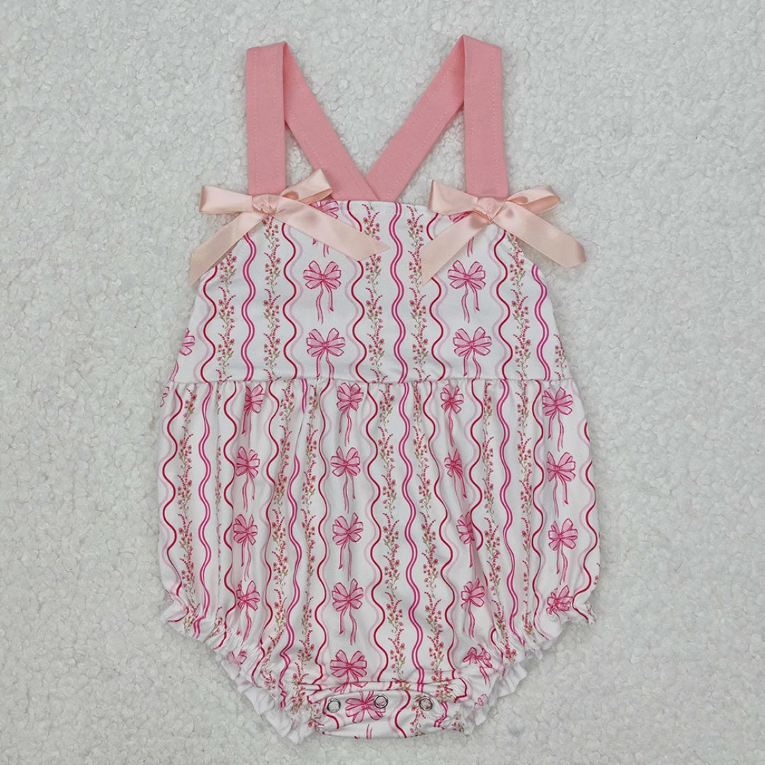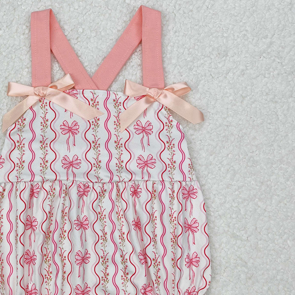 SR2704Floral Baby Girls Summer Romper with Pink Straps Bow - Cute Infant Outfit for Girls