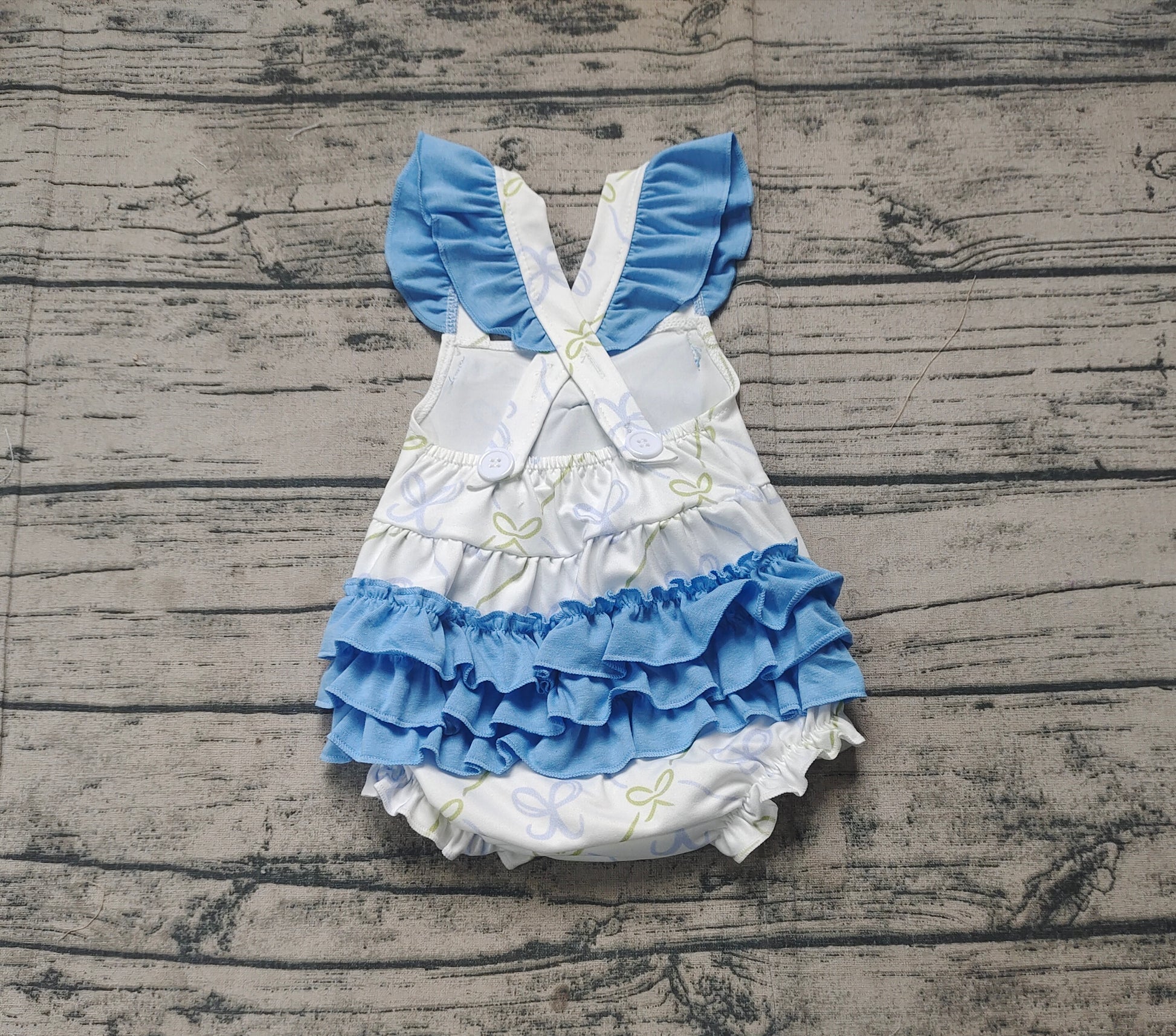 SR2720Sweet Blue Bows Bubbles Rompers for Baby Girls