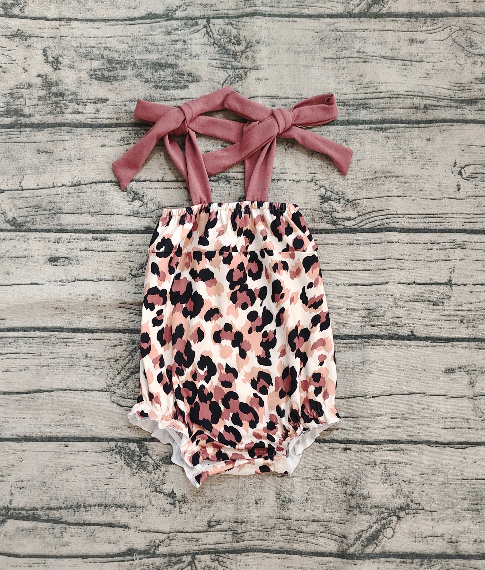 SR2913 Sample 10days Arrived RTSBrown straps leopard baby girls summer romper