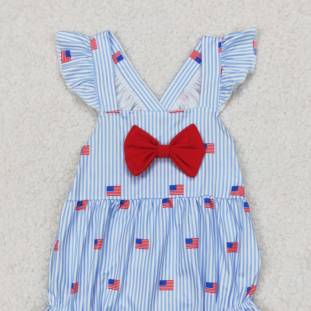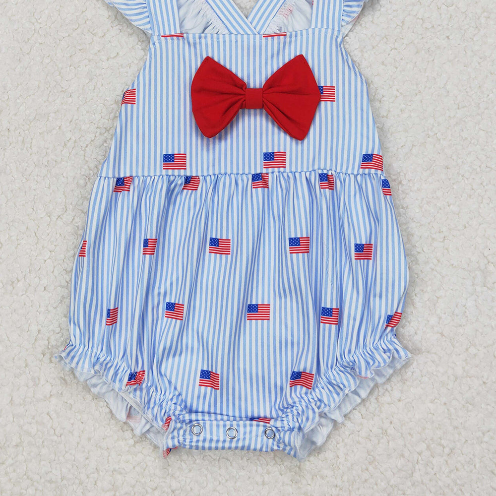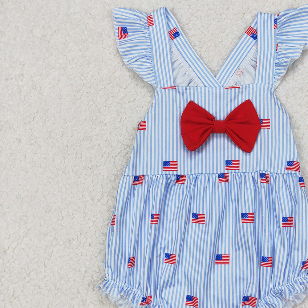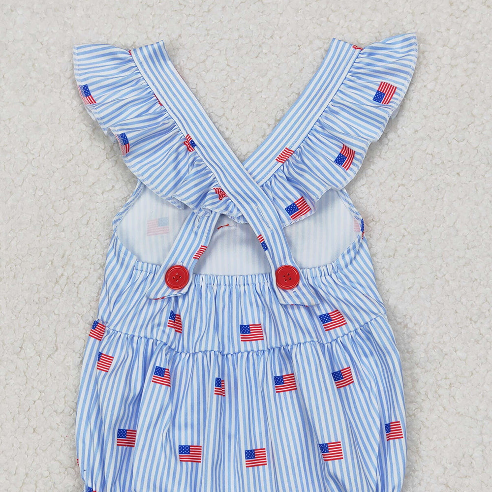 4.17 SR2921 RTS NO MOQ Flutter sleeves stripe flag baby girls 4th of july romper