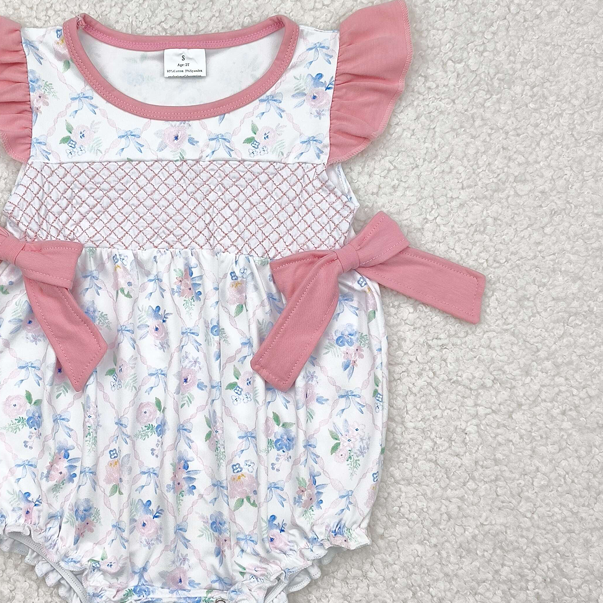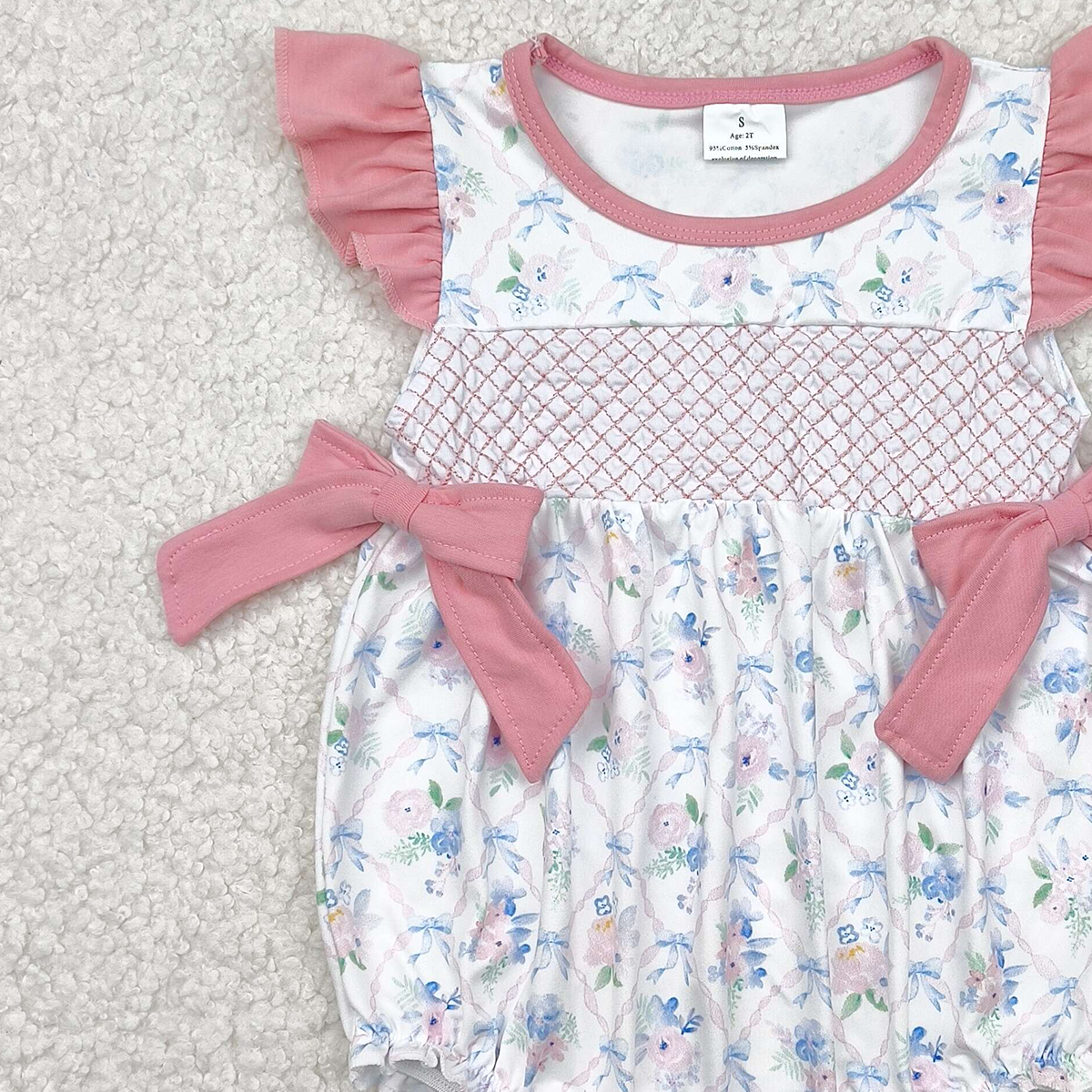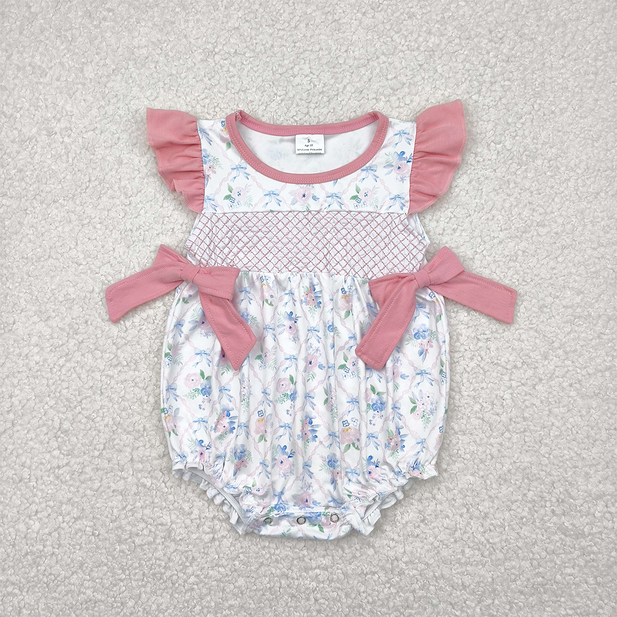 SR2923RTS NO MOQ Baby Girls Summer Rompers Baby Girls Summer Romper with Flutter Sleeves And Floral Bow - Cute And Comfortable Kids' Clothing for Warm Weather