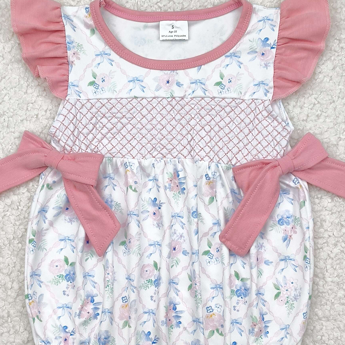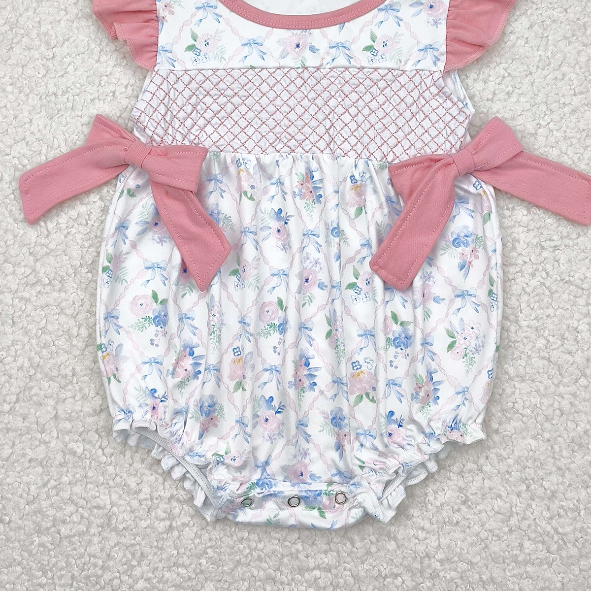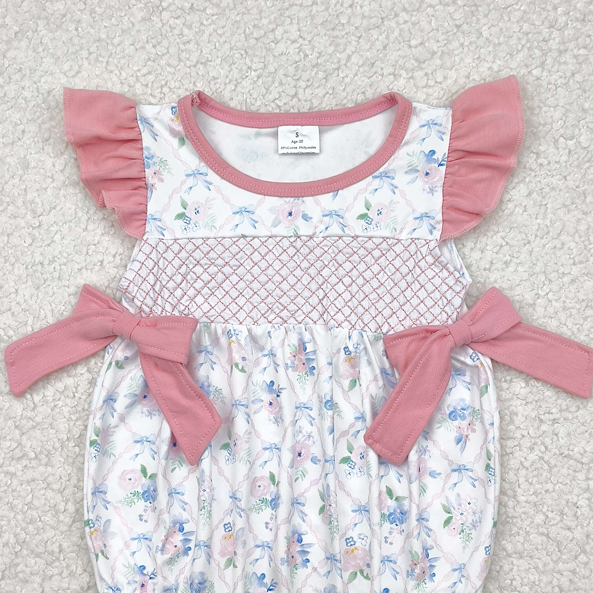 SR2923RTS NO MOQ Baby Girls Summer Rompers Baby Girls Summer Romper with Flutter Sleeves And Floral Bow - Cute And Comfortable Kids' Clothing for Warm Weather