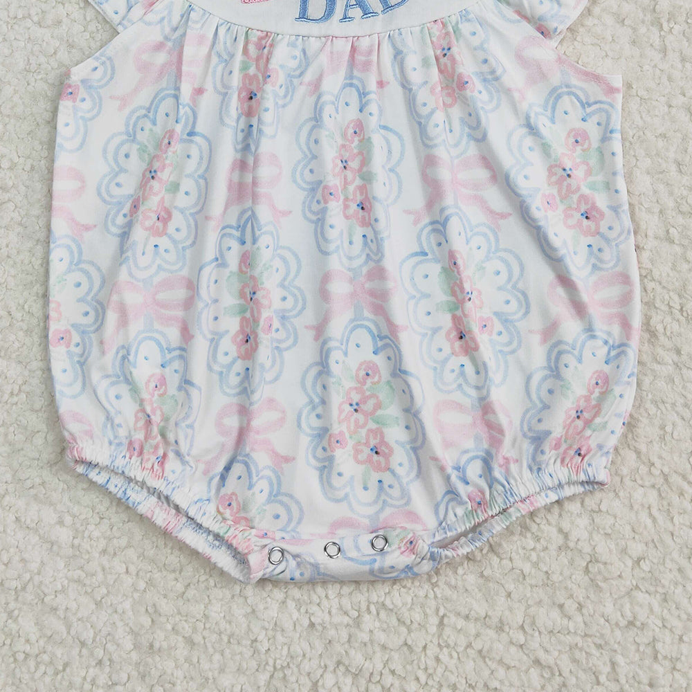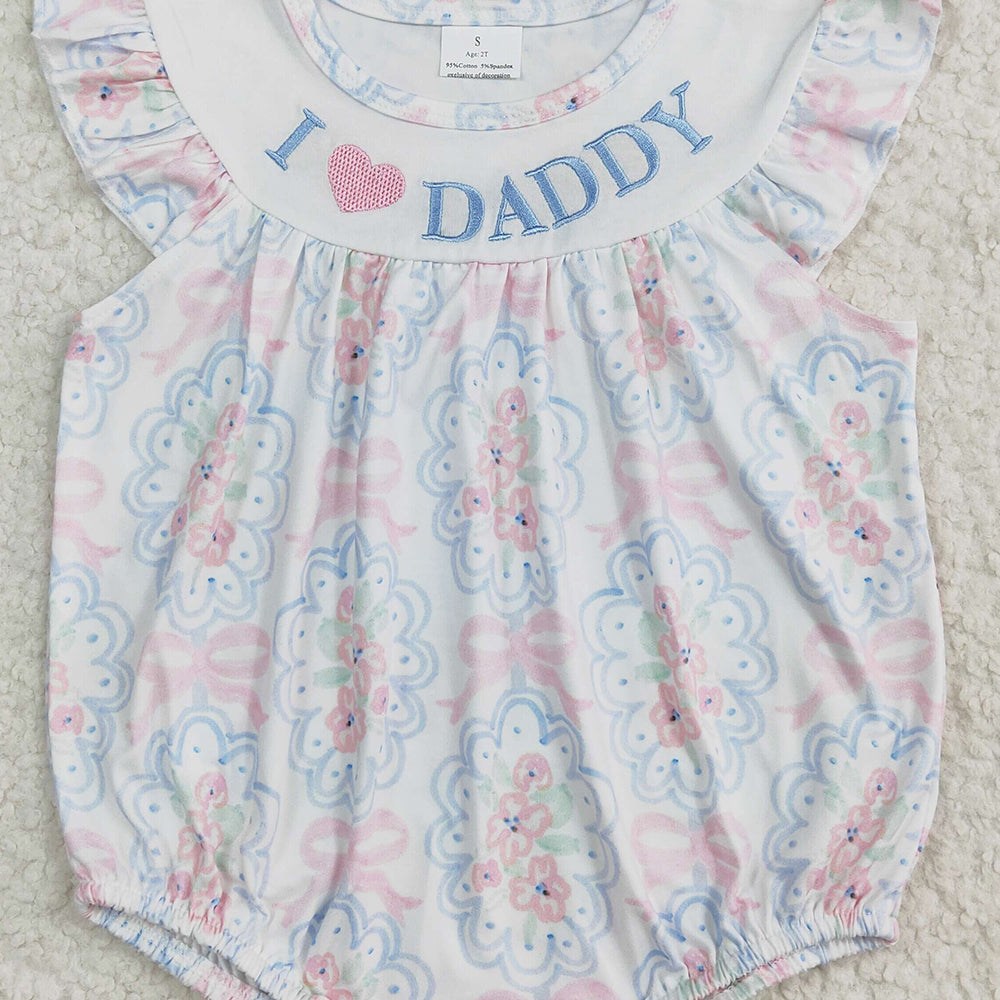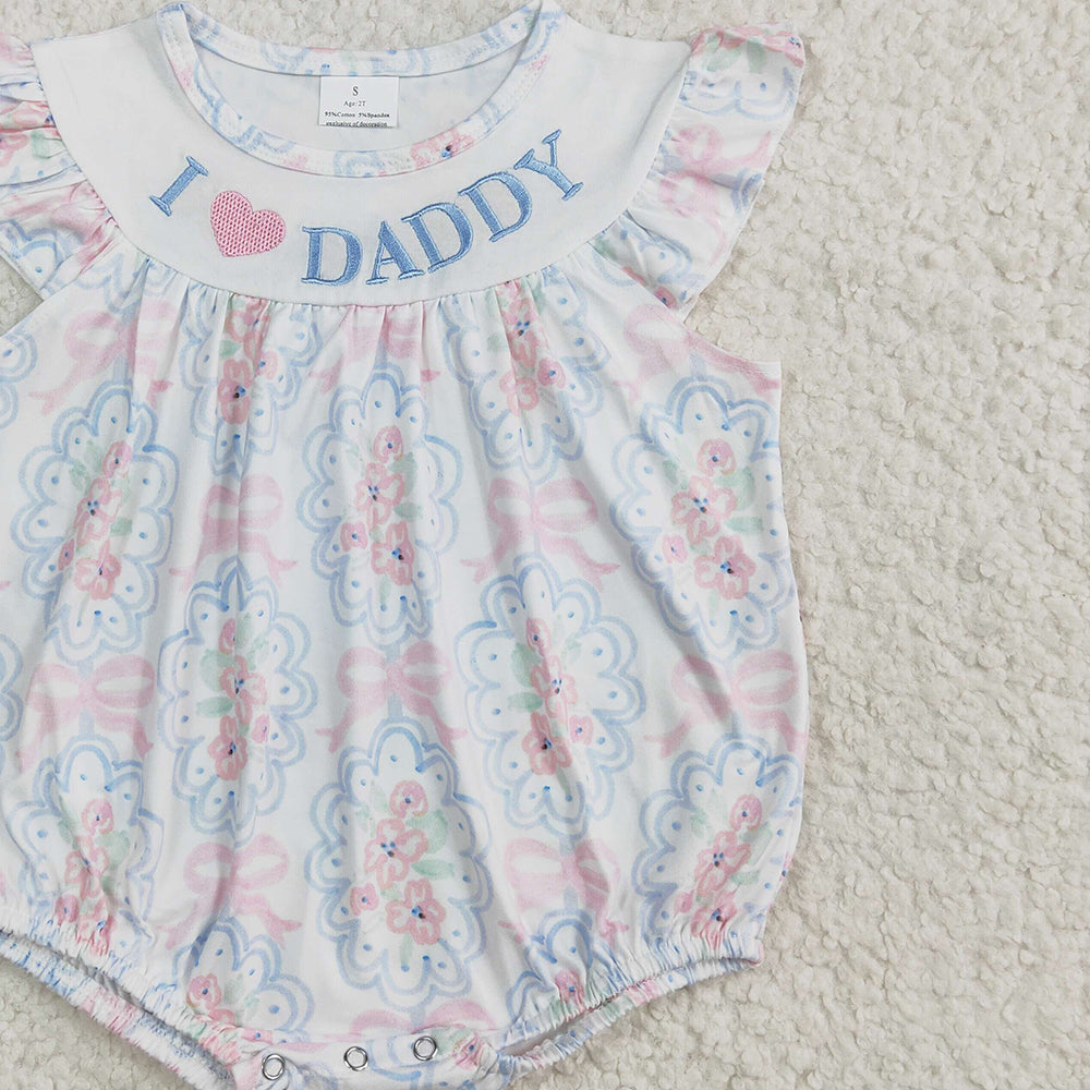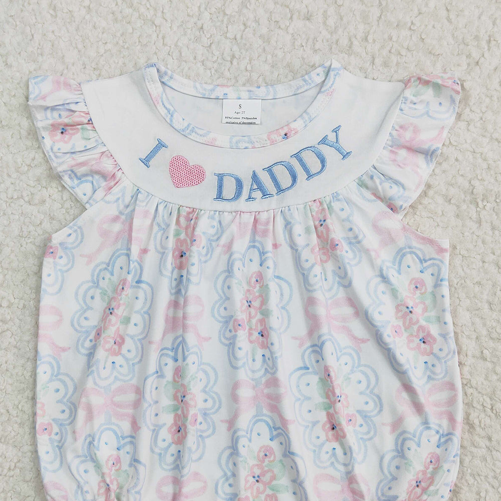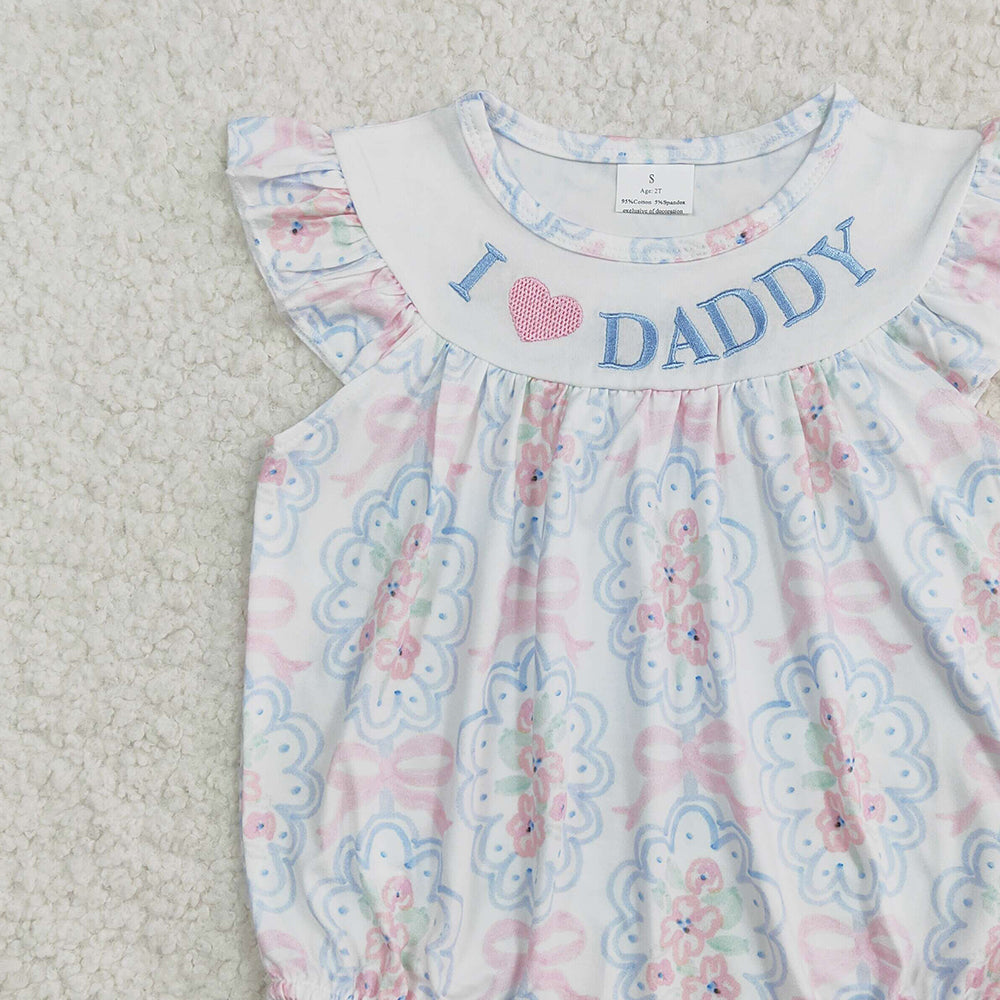 4.07 SR2946 RTS NO MOQ Baby Girls Summer Rompers I love Daddy floral bow baby girls summer romper