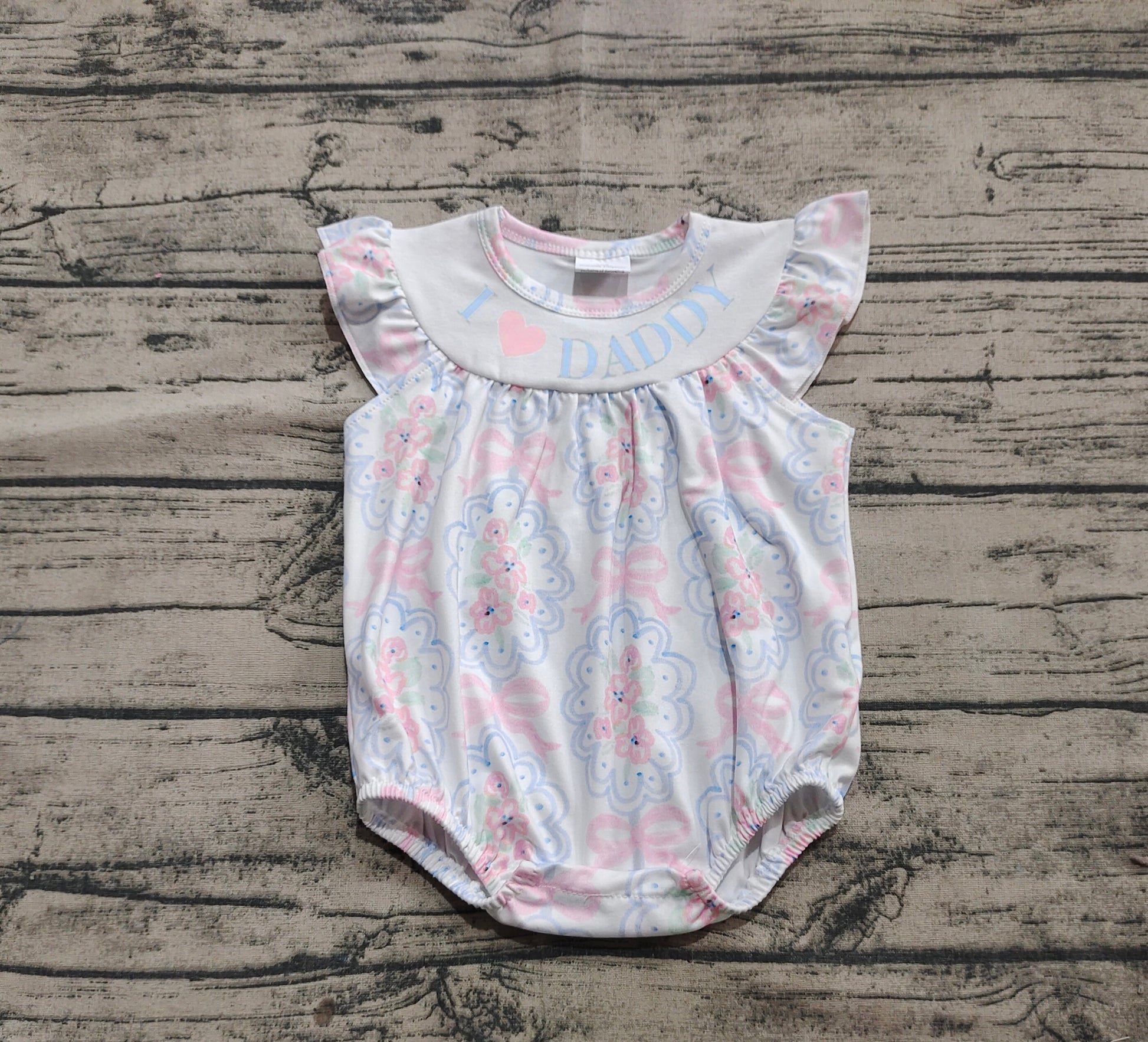 SR2946 Sample 10days Arrived RTS I love Daddy floral bow baby girls summer romper