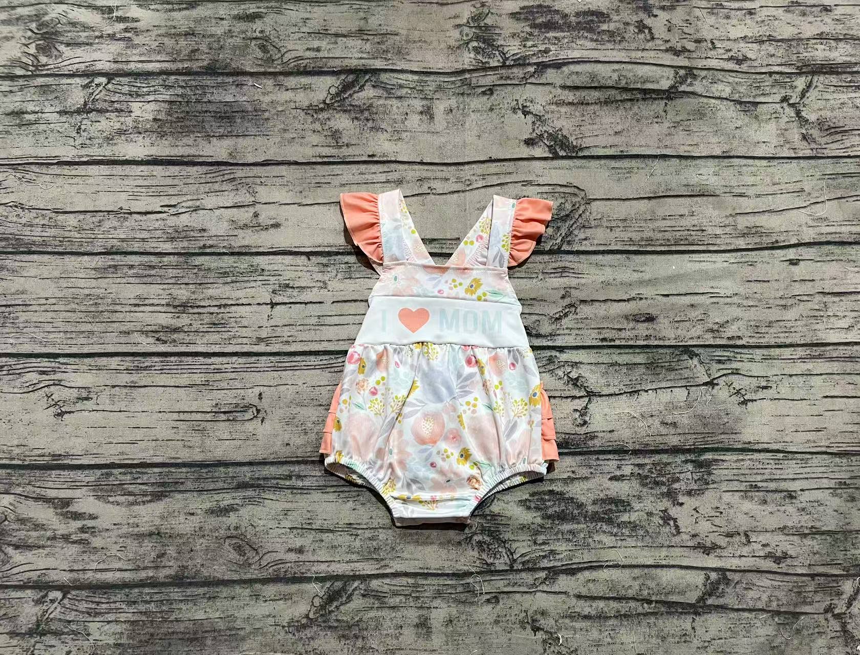 SR2948 Sample 10days Arrived RTS I love Mom floral ruffle baby girls summer romper