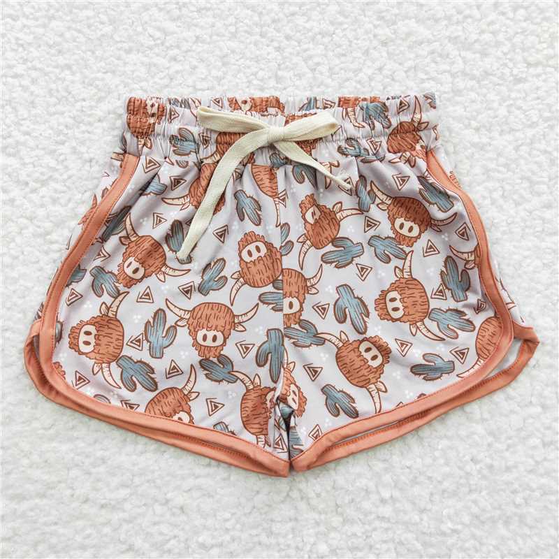SS0089 Baby Girls Western Highland Cow Sports Summer Shorts