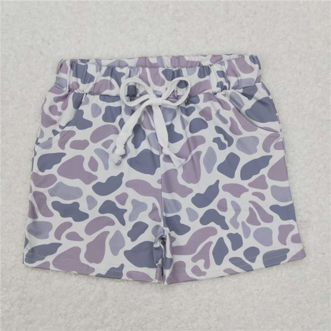 USA Shop (in stock) SS0140Kids Boy Grey Camo Summer Shorts with Pocket - Breathable Lightweight Clothing for Boys' Outdoor Activities