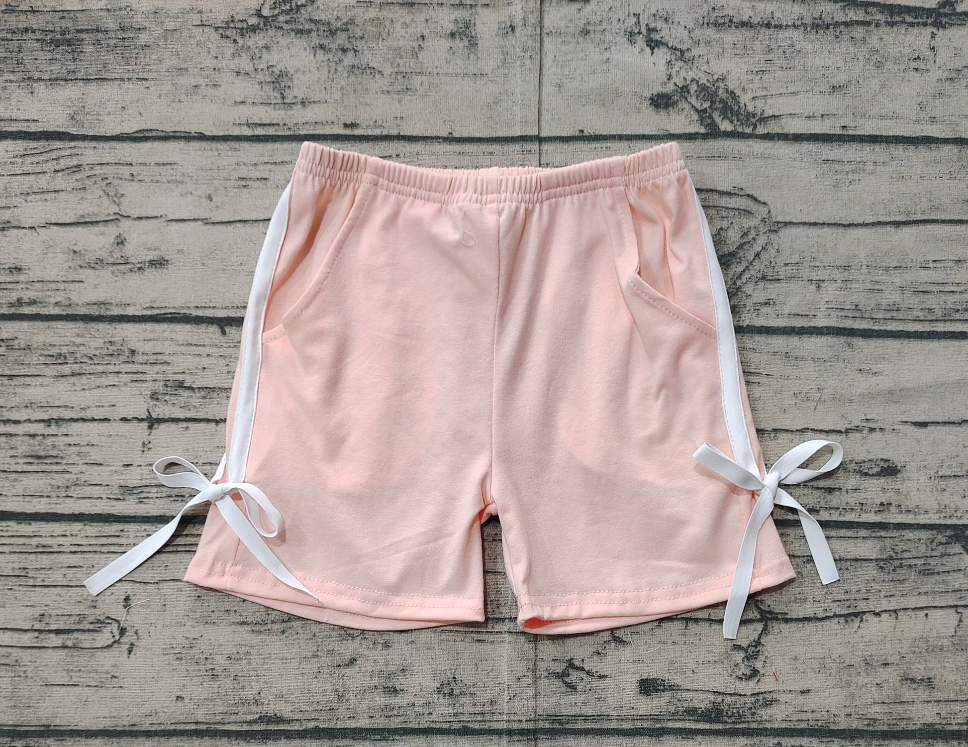 SS0425Pink white bow pocket baby girls summer shorts