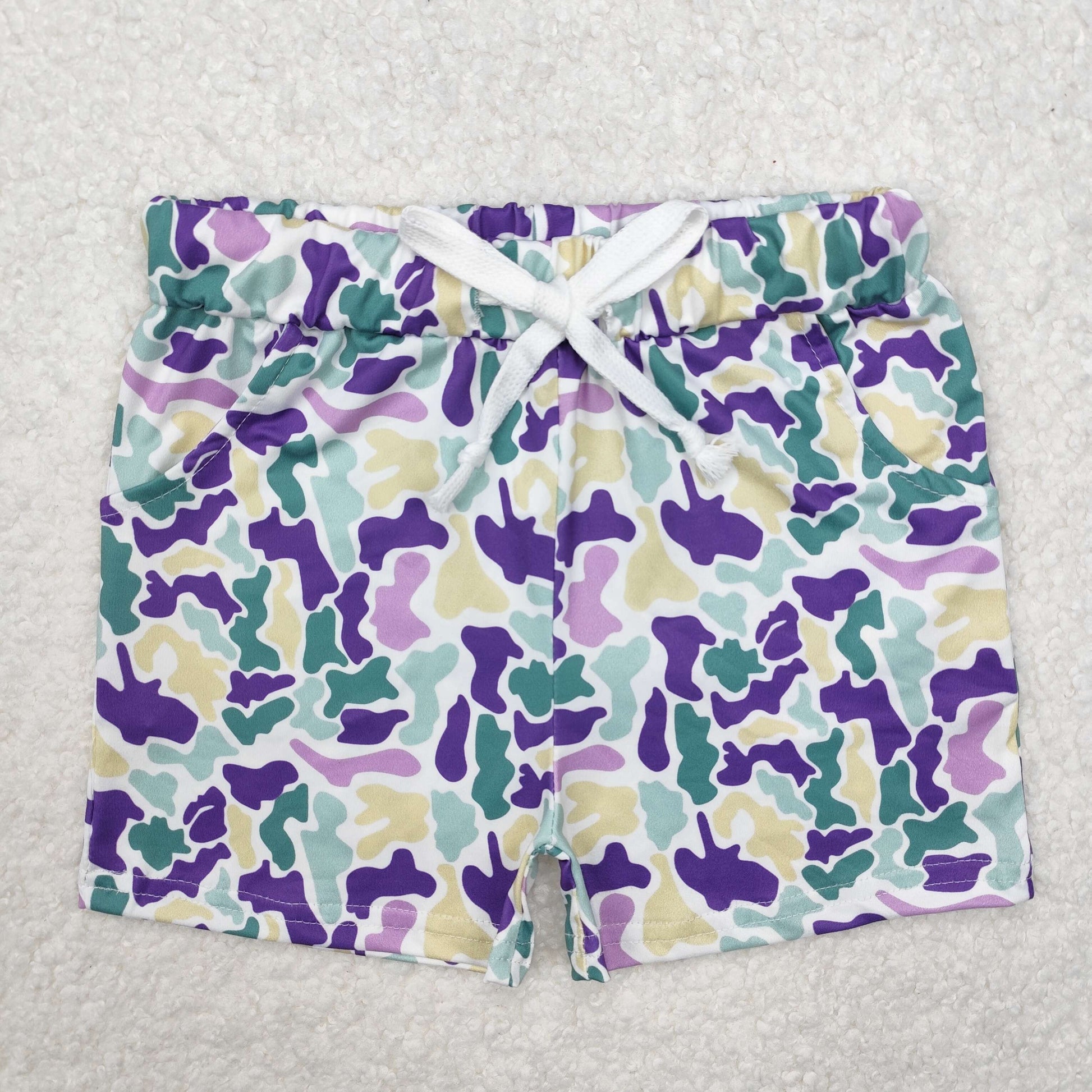 SS0433Purple yellow green camo kids boys Mardi Gras shorts