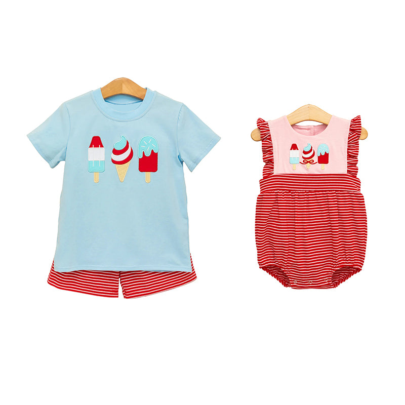 Short sleeves popsicle top stripe shorts boys 4th of july set