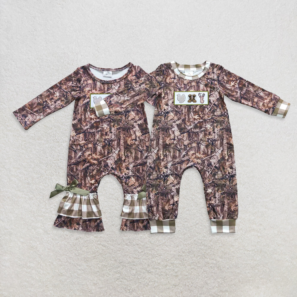 USA Warehouse (IN STOCK) Long Sleeves Camouflage Deer Ruffle Romper for Baby Girls And Boys Cute Wild Animal Print Outfit with Pockets