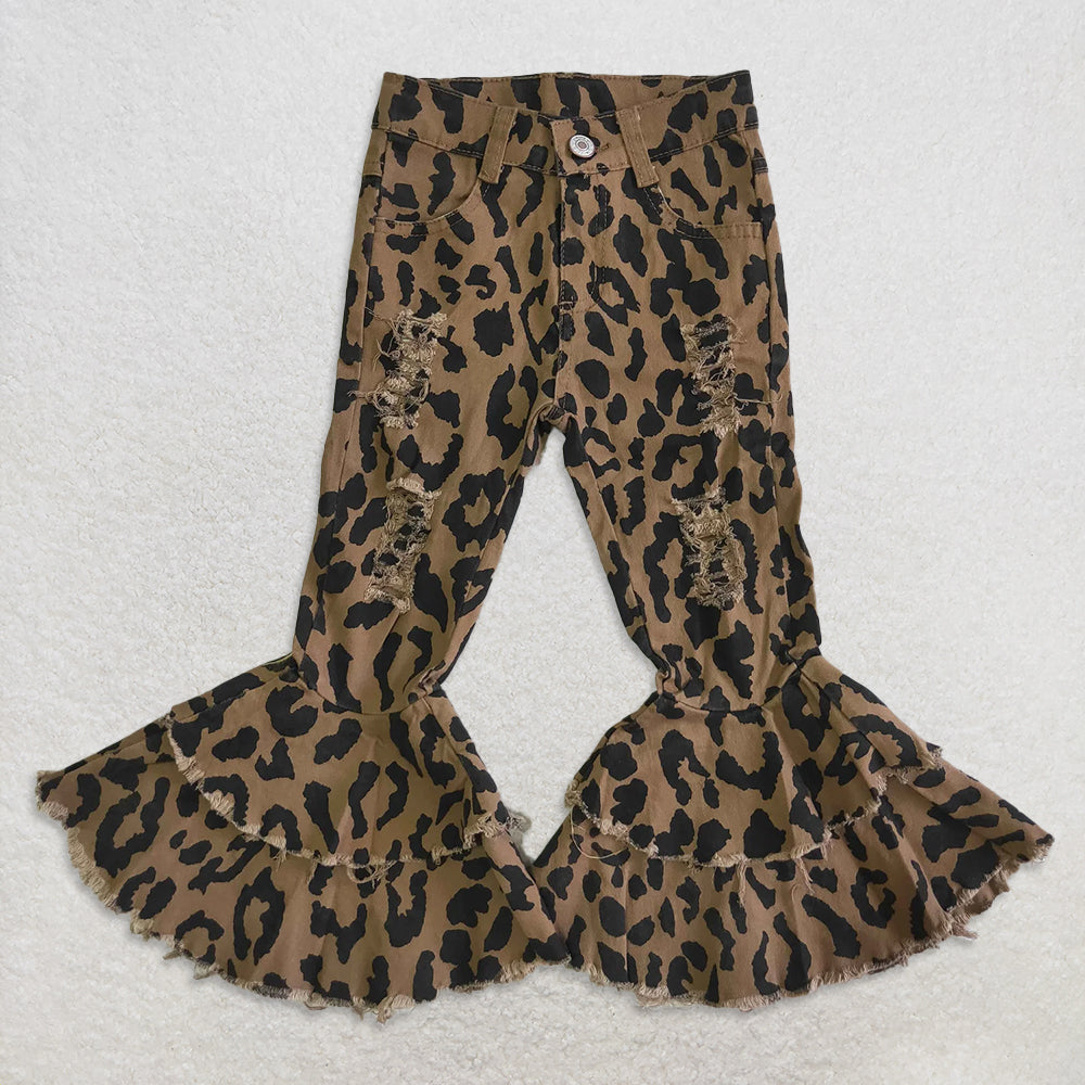 USA Warehouse (IN STOCK) Girls Distressed Ruffle Bell Bottom Denim Pants Light Tassels Detailing Bell Bottom Jeans for Kids