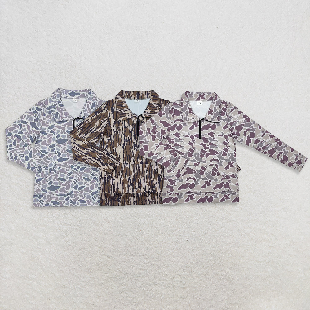USA Warehouse (IN STOCK) Women's Camo Pocket Zipper Pullover Adult Zip up Hoodie Casual Streetwear