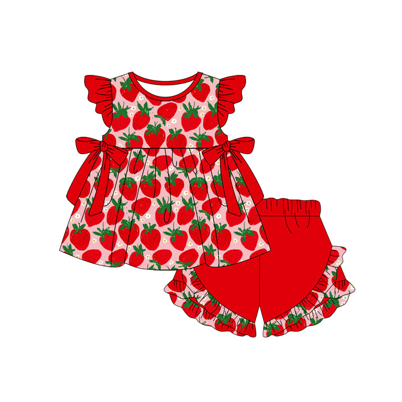 Flutter sleeves strawberry tunic red shorts girls clothes